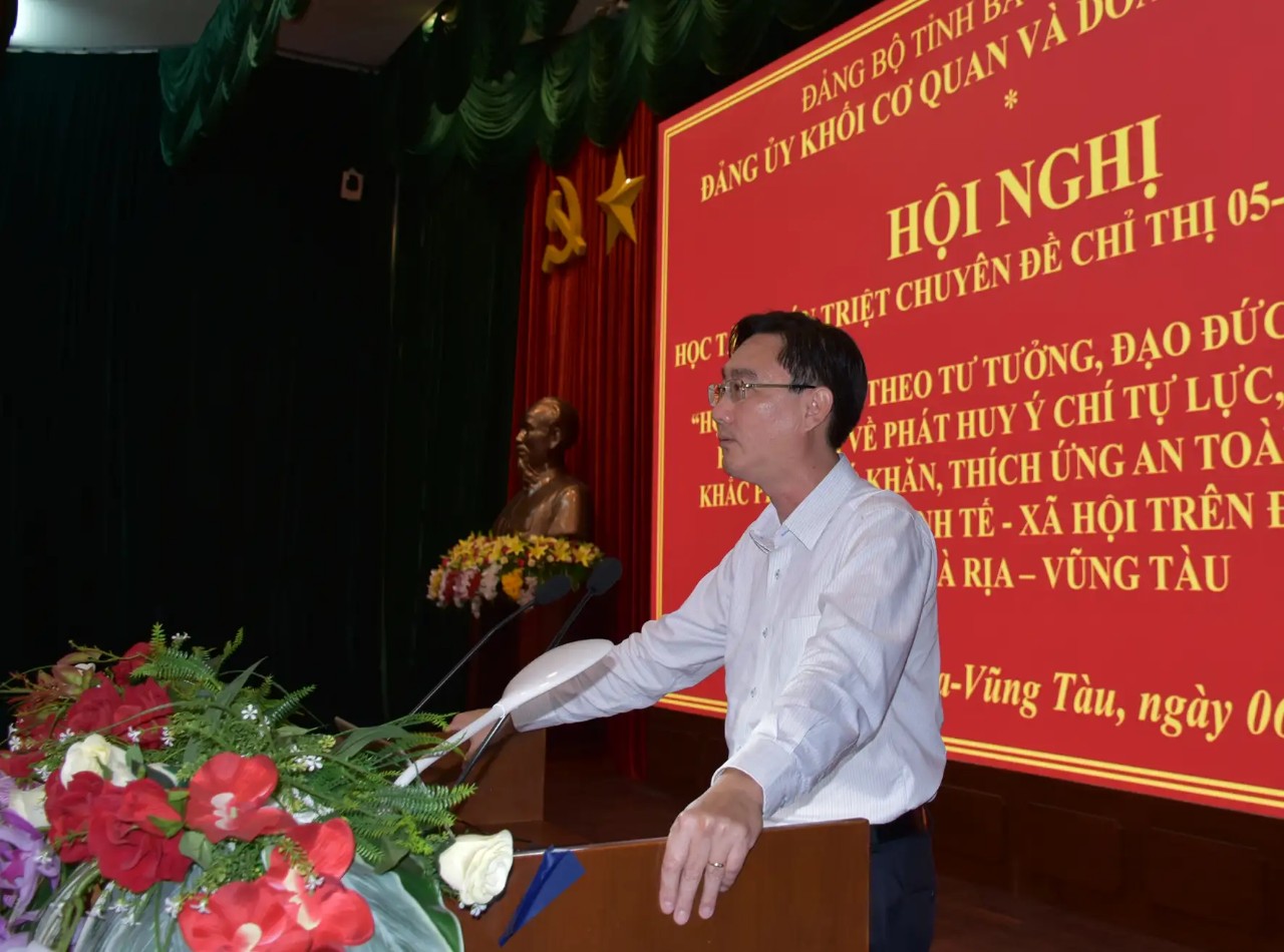 Chiều 06/4/2022, Ban Thường vụ Đảng ủy Khối Cơ quan và Doanh nghiệp tỉnh tổ chức Hội nghị triển khai, học tập Chuyên đề năm 2022 - Chỉ thị 05 của Bộ Chính trị nhằm thực hiện Kế hoạch 103-KH/TU, ngày 25/01/2022 của Ban Thường vụ Tỉnh ủy về xây dựng chuyên đề năm 2022; Kế hoạch 58-KH/TU, ngày 21/03/2022 của Ban Tuyên giáo Tỉnh ủy về triển khai học tập Chuyên đề năm 2022 "Học tập và làm theo tư tưởng, đạo đức, phong cách Hồ Chí Minh về phát huy ý chí tự lực, tự cường, khắc phục khó khăn, thích ứng an toàn, linh hoạt, phát triển kinh tế xã hội trên địa bàn tỉnh Bà Rịa - Vũng Tàu”.