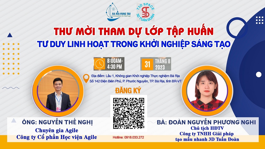 Đăng ký tham dự lớp tập huấn "Tư duy linh hoạt trong khởi nghiệp sáng tạo" (27/08/2023)