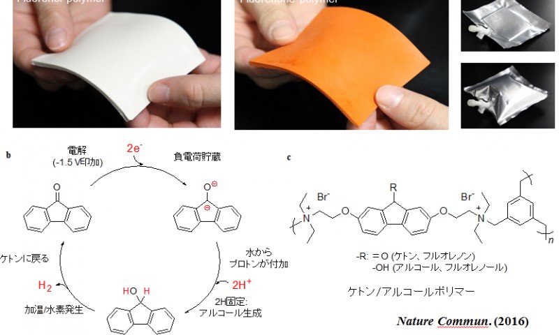 Nhóm nghiên cứu do GS. Hiroyuki Nishide và GS. Kenichi Oyaizu tại Cục Hóa học ứng dụng đã phát triển một polime xeton (floren), có thể được sản xuất dưới dạng tấm mỏng và có khả năng cố định khí hydro thông qua hydro hóa điện phân đơn giản trong nước ở nhiệt độ phòng. Hơn nữa, polime floren còn giải phóng hydro fluorenol khi được làm nóng đến 800C nhờ có chất xúc tác iriđi chứa nước. Nhóm nghiên cứu đã chứng minh trong các điều kiện ôn hòa, chu trình cố định và giải phóng hydro có thể được lặp lại nhưng không bị suy giảm mạnh.