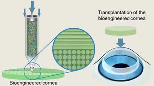 Các nhà khoa học đã phát triển công nghệ in 3D giác mạc nhân tạo bằng cách sử dụng giác mạc nhân tạo được làm bằng stroma giác mạc và tế bào gốc. Do giác mạc này được làm từ bioink có nguồn gốc từ mô giác mạc, nó tương thích sinh học và công nghệ in tế bào 3D tái cấu trúc vi môi trường giác mạc, do đó, độ trong của nó tương tự như giác mạc của con người.