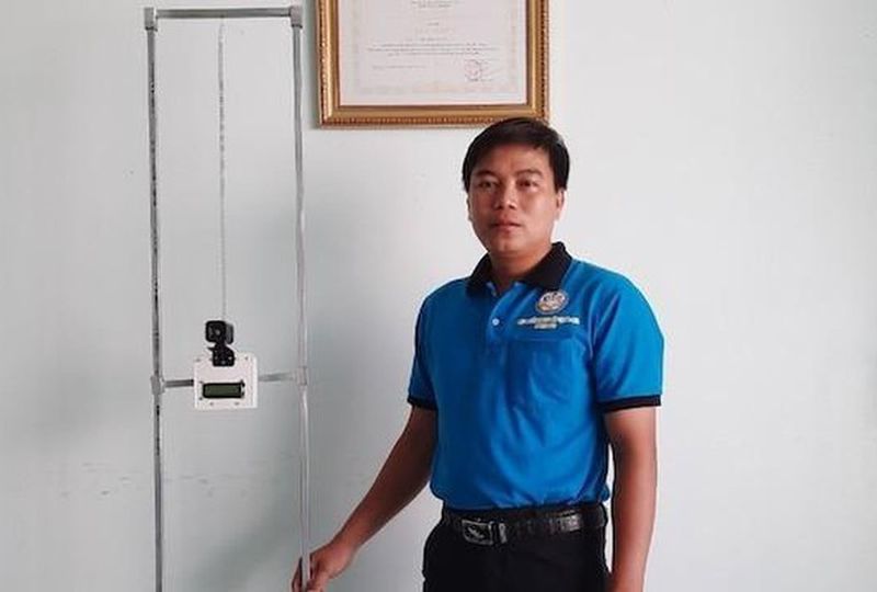 Thầy Mai Trọng Hữu là giáo viên dạy Địa lý trường THCS Lương Nghĩa, huyện Long Mỹ, tỉnh Hậu Giang đã sáng chế thành công máy đo thân nhiệt thông minh để phục vụ cho học sinh, giáo viên của chính trường mình.