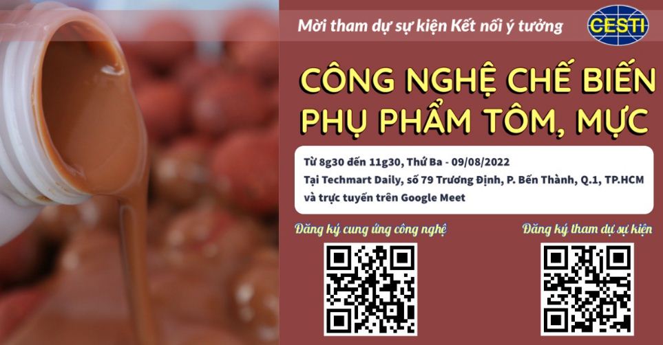Mời tham gia sự kiện kết nối ý tưởng với chủ đề “Công nghệ chế biến phụ phẩm tôm, mực”